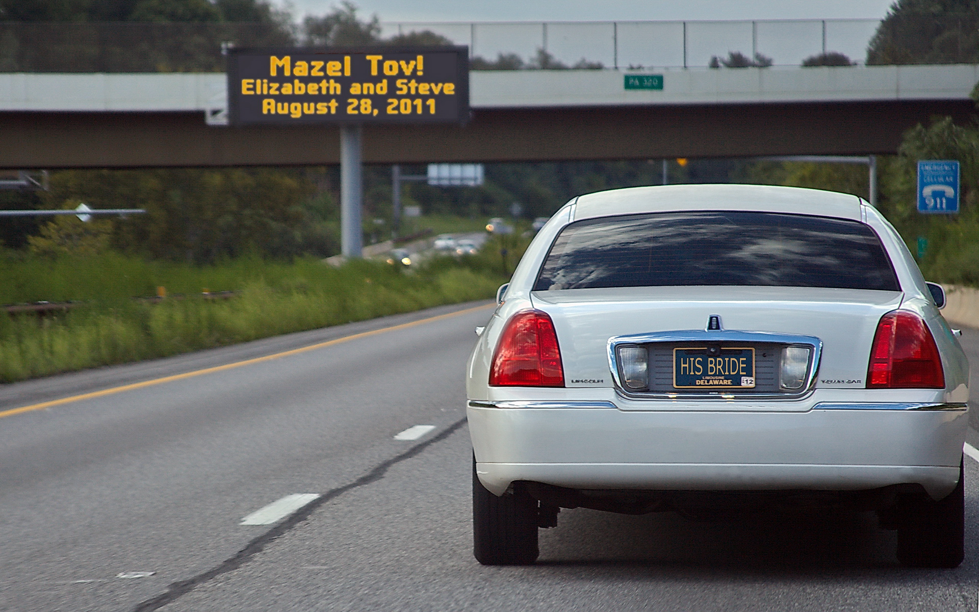 The limousine license plate and traffic sign were modified in this image to enhance the memory.